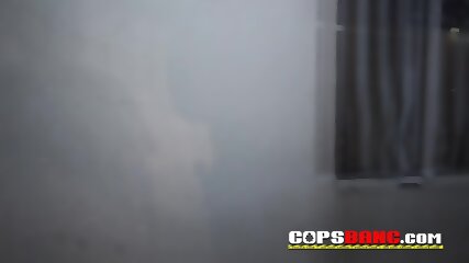 Black dude gets too horny when two police officers invite him to fuck them hard in a threesome.